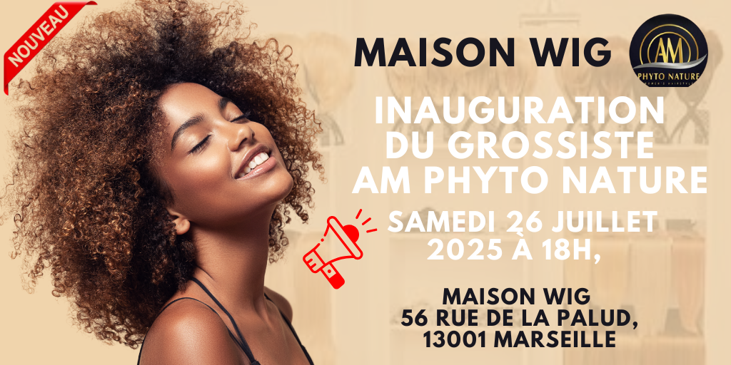 La prestigieuse Maison WIG, issue de la maison mère AM PHYTO NATURE, vous ouvre les portes de son tout nouveau magasin grossiste au cœur de Marseille. À l'occasion de son inauguration officielle le samedi 26 juillet 2025 à 18h, découvrez un showroom entièrement dédié à l'excellence des cheveux naturels.